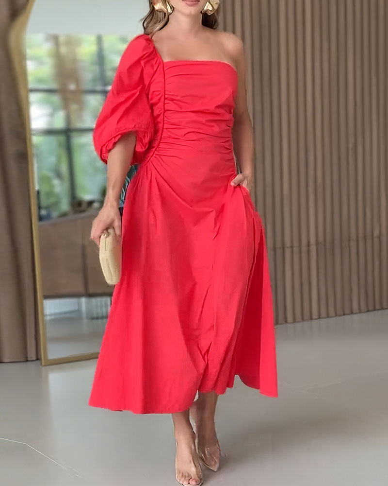 One Shoulder Elegant Midi Dress